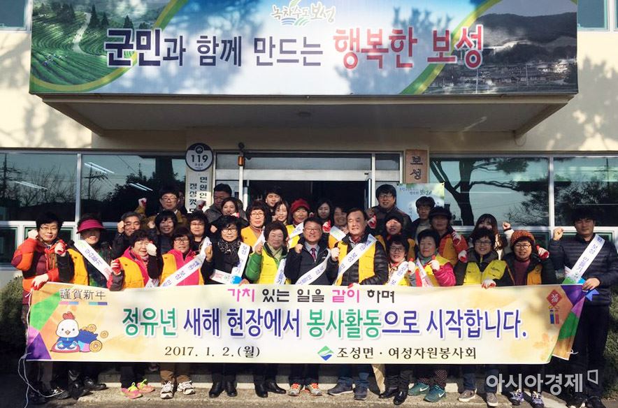 "‘가치’있는 일을‘같이’하며 새해 시작" [아시아경제 노해섭 기자]보성군 조성면(면장 임오모)은 시무식을 관행적 의식행사에서 벗어나 '시가지 청소' 로 정유년 새해 첫날 업무를 시작했다. 이번 조성면 시무식은 2일 오전 10시부터 면사무소 직원 및 여성자원봉사단체 회원 40여명이“현장에서 더 열심히 뛰겠다”는 각오를 다지고, “가치 있는 일을 같이 하자”며 새해 첫날 시가지 청소 봉사활동을 실시했다. 임오모 면장은 “새해에는 더욱더 주민 곁으로 다가가는 적극적인 현장행정과 주민이 행복하고 감동을 주는 소통행정으로 함께하는 조성을 만드는데 최선을 다하겠다”고 새해 새 각오를 밝혔다. 조성면에서는 2016년 종무식을 직원들과 간담회를 갖고 한 해 업무를 마무리 했으며, 면민과 직원들의 적극적인 행정을 통해 2016년 군 평가 8개부문에서 수상과 함께 도 현장행정 평가 부문에서도 좋은 결과를 기대하고 있다. 노해섭 기자 nogary@<ⓒ세계를 보는 창 경제를 보는 눈, 아시아경제(www.asiae.co.kr) 무단전재 배포금지>
