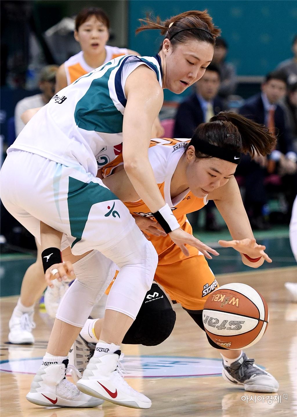 [부천=아시아경제 김현민 기자]여자프로농구 KEB하나은행과 KB국민은행의 2016-2017 정규리그 경기가 2일 부천체육관에서 열렸다. KB국민은행 박지수가 상대 김정은과 공을 다투고 있다. 김현민 기자 kimhyun81@asiae.co.kr<ⓒ세계를 보는 창 경제를 보는 눈, 아시아경제(www.asiae.co.kr) 무단전재 배포금지>