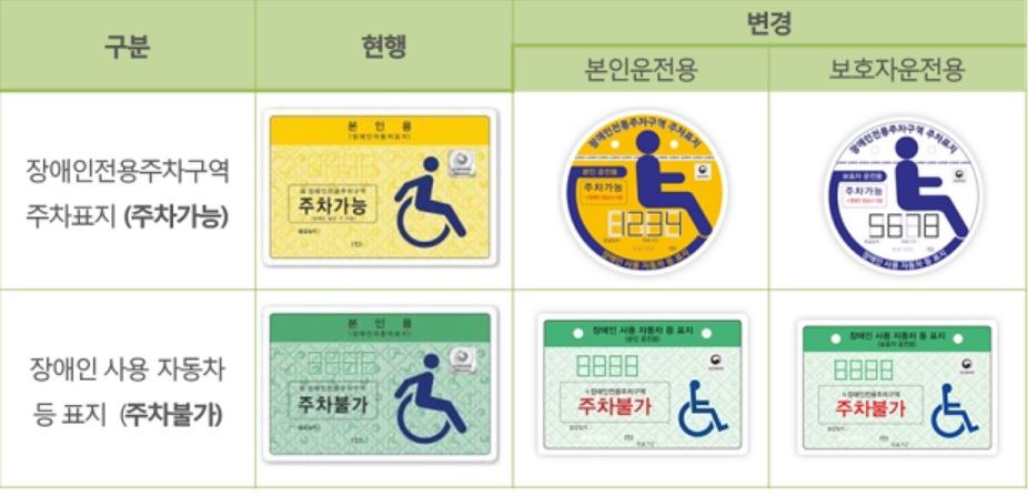 [아시아경제 이현주 기자] 앞으로 장애인전용주차구역 주차표지가 장애인 본인용은 노란색, 보호자용은 흰색으로 더 명확하게 구분된다. 또 '장애인자동차표지'에서 '장애인전용주차구역 주차표지'로 명칭이 변경된다. 장애인전용주차구역은 주차가능 표지를 발급 받은 차량만이 이용할 수 있으며 주차가능표지가 부착된 차량이라 하더라도 보행이 불편한 장애인이 탑승하지 않으면 주차할 수 없다.서울시의 경우 다음달 28일까지 2개월 간 장애인전용주차구역 주차표지 교체 기간을 갖는다. 올해 8월말까지 기존 표지와 병행 사용이 가능하다. 9월1일부터 단속을 실시해 위반 차량은 과태료 10만원이 부과된다.교체 절차는 기존 주차표지, 자동차등록증, 운전면허증을 지참해 장애인의 주민등록 관할 동주민센터에 방문 신청하면 장애유형 및 등급 확인, 보행상 장애여부 확인을 거쳐 주차가능한 '장애인전용주차구역 주차표지' 또는 주차불가 '장애인 사용 자동차 등 표지'로 교체 발급하면 된다. 거동불편 등의 사유로 방문이 어려울 경우에는 대리 신청·수령도 가능하며, 신청 시 반드시 기존 주차표지를 반납해야 한다.다만 현재 주차가능 표지를 발급받아 사용 중인 지체장애 하지관절, 척추장애 6급의 경우에는 2010년 1월1일 이후 보행상 장애 기준에서 제외됨에 따라, 이번 주차표지 교체 시 전용주차구역에 주차할 수 없는 주차불가 표지로 교체 발급된다.조세연 서울시 장애인자립지원과장은 "장애인전용주차구역에는 주차가능 표지가 부착된 차량이라도 보행이 불편한 장애인이 탑승하는 경우에 만 주차할 수 있다"며 "장애인의 이동권 보장을위해 시민들의 적극적인 관심과 협조를 당부드린다"고 말했다.이현주 기자 ecolhj@asiae.co.kr<ⓒ세계를 보는 창 경제를 보는 눈, 아시아경제(www.asiae.co.kr) 무단전재 배포금지>