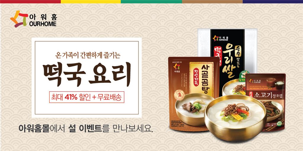 [아시아경제 이주현 기자]아워홈이 정유년 새해를 맞아, 공식 온라인 쇼핑몰 ‘아워홈몰’에서 온 가족이 맛있게 즐길 수 있는 ‘떡국 요리 세트 기획전’을 오는 23일까지 실시한다고 4일 밝혔다. 이번 기획전에서는 누구나 맛있는 떡국을 손쉽고 간편하게 끓일 수 있는 떡국 요리 세트 3종을 선보인다. 특히, 최대 41% 할인율을 적용해 1~2만원 대의 부담 없는 가격과 무료 배송 서비스까지, 설날을 준비하는 고객들에게 다양한 혜택을 함께 제공한다. 먼저, ‘떡국요리 세트’는 엄선된 사골로 정성껏 끓여 진하고 깔끔한 맛이 일품인 아워홈의 ‘정성가득 사골곰탕’과 우리 쌀로 만들어 찰지고 쫄깃한 ‘손수 맛있는 우리쌀 떡국 떡’ 제품으로 구성됐다. 이외에도 떡국 위에 고명으로 얹으면 더욱 맛있게 즐길 수 있는 장조림’이 포함된 ‘떡국요리+장조림 세트’, 떡국에 곁들여 먹기에 안성맞춤인 맛김치를 포함한 ‘떡국요리+장조림+김치세트’도 만나볼 수 있다. 아워홈 관계자는 “새해에 먹는 떡국은 하얀 떡만큼이나 몸과 마음을 깨끗하게 시작하자는 뜻과 긴 가래떡 모양처럼 무병장수를 기원하는 의미를 담고 있다”라며, “이번 기획전에서 마련한 맛있는 떡국 한 그릇과 함께 올 한해도 건강하고 행복하게 보내시길 기원한다”라고 전했다.이주현 기자 jhjh13@asiae.co.kr<ⓒ세계를 보는 창 경제를 보는 눈, 아시아경제(www.asiae.co.kr) 무단전재 배포금지>