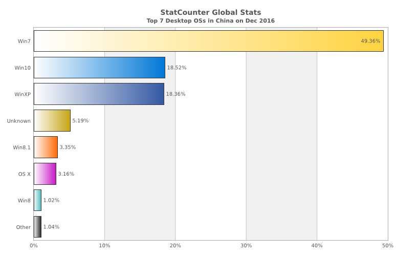 중국 PC 운영체제 이용률(사진=스탯카운터)