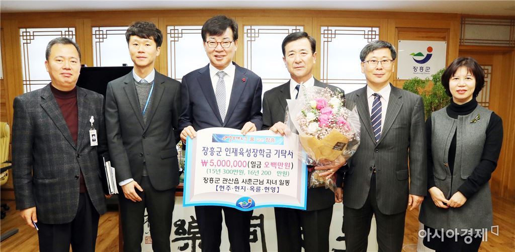 "장학회 도움으로 학업 마친 4남매, 2년째 장학금 기탁""시골서 농사짓는 아버지 조언으로 장학금 기탁 결정" [아시아경제 노해섭 기자]장흥군인재육성장학회의 도움으로 학업을 마친 4남매가 당당한 사회인으로 성장해 고향의 후배들을 돕겠다고 나서 훈훈함을 전하고 있다. 사연의 주인공은 장흥군 관산읍 출신으로 현재 서울에서 직장생활을 하고 있는 사현주(여·37), 현지(여·35), 옥륜(남·33), 현영(여·29) 4남매다. 이들 4남매는 지난 5일 장흥군수실에서 십시일반으로 모은 장학금 2백만원을 장흥군인재육성장학회에 전달했다. 이날 기탁식에는 서울에서 일하는 자녀들을 대신해 아버지 사춘근(관산읍· 65) 씨가 참석했다. 4남매는 모두 대학 재학 시절 장흥군인재육성장학회의 장학금을 받고 학업을 무사히 마칠 수 있었다.장학금 기탁을 결정하게 된 배경에는 이처럼 자신들이 받은 장학금에 대한 감사의 의미도 있지만, 관산읍 신동리에서 농업과 축산업에 종사하고 있는 아버지 사춘근 씨의 뜻이 컸다. 농사짓는 아버지로부터 성실함과 감사함을 배우고 자란 덕인지 이들 남매들은 사회에서도 안정적으로 자리를 잡았다. 첫째 현주 씨는 유베이스라는 아웃소싱 전문기업에서 사내강사로, 둘째 현지 씨는 문화체육관광부 산하 한국문화관광정책연구원에서 연구원으로 재직 중이다. 셋째 옥륜 씨는 육국기무사령부에서 정보담당 중사로, 막내인 현영 씨는 서울 영등포구 청소년상담복지센터에서 근무하고 있다. 이들 4남매는 지난해 장학금 3백만원을 모아 장흥군인재육성장학회에 남모르게 기탁하고, 올해 두 번째 장학금을 기탁한 것으로 알려져 감동을 더했다. 이날 기탁식에서는 지난해 3백만원과 올해 2백만원을 더한 총 5백만원의 장학금 기탁증서가 전달됐다. 막내 사현영 씨는 “큰 금액은 아니지만 매년 같은 금액으로 장학금을 기탁하고자 한다”며, “작은 정성이지만 후배 청소년에게 힘이 됐으면 한다”고 말했다. 한편, 장흥군인재육성장학회는 현재까지 131억 1천여만원의 기금을 조성했으며, 장학생 선발, 해외비전캠프 운영, 외국어체험센터 운영 등을 지원하고 있다.노해섭 기자 nogary@<ⓒ세계를 보는 창 경제를 보는 눈, 아시아경제(www.asiae.co.kr) 무단전재 배포금지>