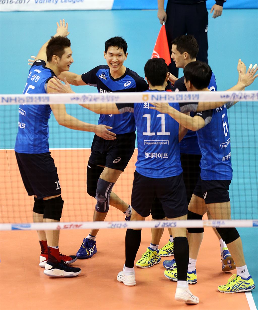 [아시아경제 김흥순 기자] 남자 프로배구 현대캐피탈이 원정에서 KB손해보험에 역전승하며 선두로 도약했다. 현대캐피탈은 6일 구미 박정희체육관에서 열린 NH농협 2016~2017 V리그 남자부 4라운드 원정경기에서 KB손보에 먼저 두 세트를 내주고도 세트스코어 3-2(20-25 23-25 25-23 25-23 15-10)로 승부를 뒤집었다. 최근 2연패를 벗어나면서 승점 2점을 보태 14승7패(승점 41)로 대한항공(승점 40)을 밀어내고 선두로 올라섰다. 오른쪽 공격수 문성민이 양 팀 가장 많은 32점으로 승리를 이끌었다. 한 경기 개인 최다득점(종전 31점)도 경신했다. 서브에이스 일곱 개와 블로킹 네 개, 후위공격 일곱 개를 성공하며 트리플크라운(서브·블로킹·후위 공격 각 3개 이상 성공)까지 달성했다. 장충체육관에서 열린 여자부 경기에서는 홈팀 GS칼텍스가 IBK기업은행을 세트 스코어 3-2(25-22 25-23 17-25 14-25 21-19)로 물리쳤다. 알렉사 그레이가 36점을 책임졌고 강소휘(21점)와 이소영(18점)도 두 자릿수 득점을 했다. 중앙 공격수 한송이는 여자부 역대 두 번째로 3500 공격 득점(3천501점) 고지를 넘었다. 김흥순 기자 sport@asiae.co.kr<ⓒ세계를 보는 창 경제를 보는 눈, 아시아경제(www.asiae.co.kr) 무단전재 배포금지>김흥순 기자 sport@asiae.co.kr<ⓒ아시아 대표 석간 '아시아경제' (www.newsva.co.kr) 무단전재 배포금지>