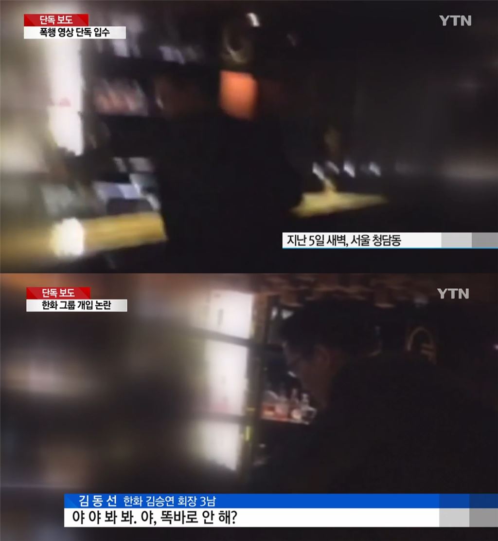한화 그룹 김승연 회장의 셋째 아들 김동선 씨의 폭행 사건 당시 촬영된 영상/사진=YTN 캡처
