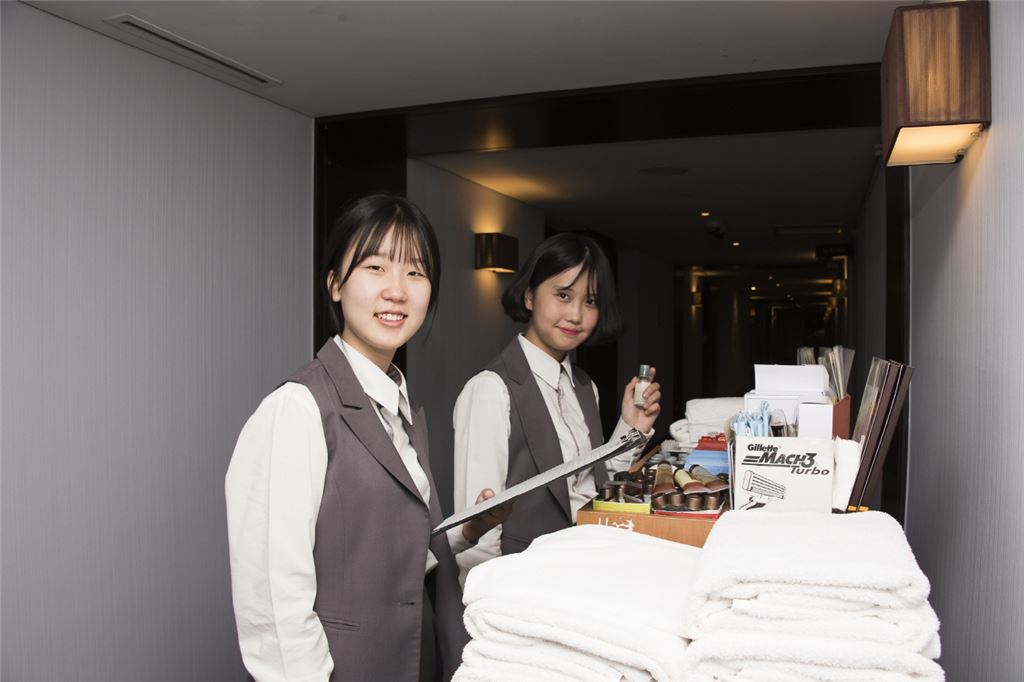 SK네트웍스 워커힐의 사회공헌 프로그램인 '워커힐 호텔리어와 함께하는 하루' 체험에 중학생들이 참여하고 있다.