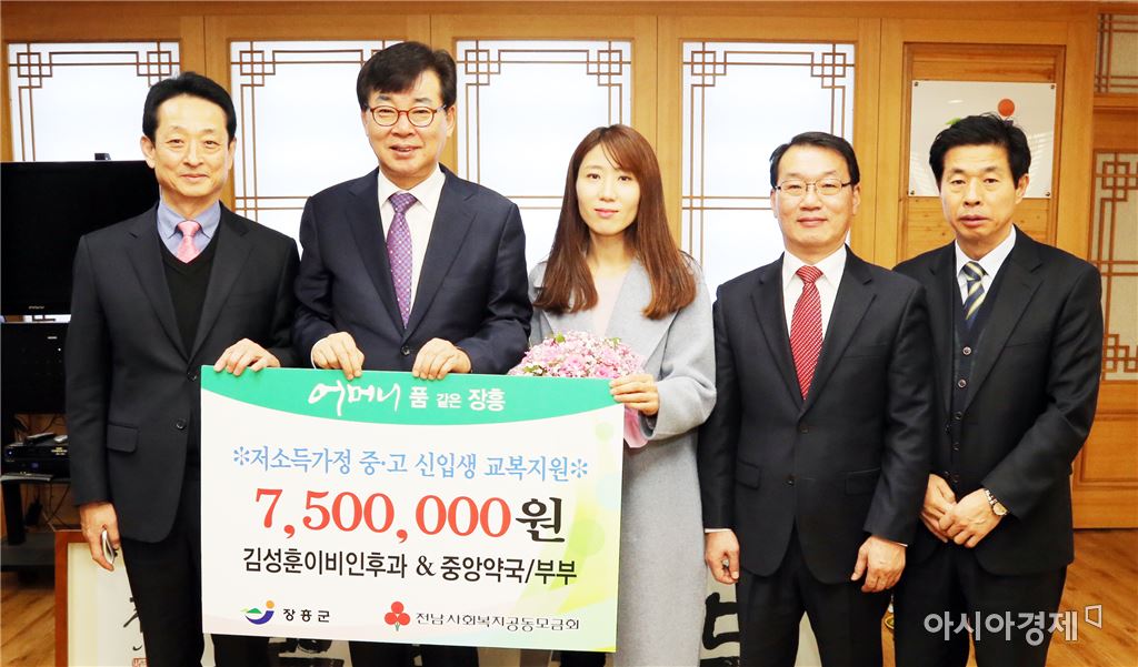 "부부가 병원과 약국 경영, 지역 청소년 33명에 교복상품권 전달" [아시아경제 노해섭 ]장흥군에 소재한 김성훈이비인후과(원장 김성훈)와 중앙약국(원장 박정민)은 17일 지역 중·고 신입생 교복비로 써달라며 750만원을 장흥군에 기탁했다. 김성훈이비인후과 김성훈 원장과 중앙약국 박정민 원장은 부부로 장흥군에서 나란히 병원과 약국을 경영하고 있다. 이번 후원금은 저소득가정 가운데 올해 중학교와 고등학교를 입학하는 학생 33명의 교복을 지원하는 데 사용된다. 중앙약국 박정민 원장은 “지역을 위해 할 수 있는 일을 고민하던 중 조은의원 현미숙 원장님의 소개로 청소년들에게 교복비를 지원하게 되었다"며 "장흥군 청소년을 위해 뜻 깊은 일을 하게 되어 기쁘고 꾸준히 지원을 이어가겠다”고 밝혔다. 교복 상품권을 받은 관산읍 한 학생은 “교복까지 지원해주셔서 할머니의 부담을 덜 수 있어 기쁘고 감사하다”며 “고등학교에 가서 성실히 생활하겠다”고 전했다.노해섭 기자 nogary@<ⓒ세계를 보는 창 경제를 보는 눈, 아시아경제(www.asiae.co.kr) 무단전재 배포금지>