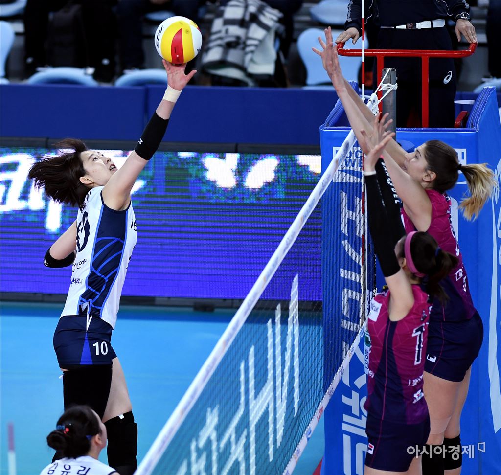 [인천=아시아경제 김현민 기자]여자프로배구 흥국생명과 IBK기업은행의 2016-2017 정규리그 경기가 17일 인천 계양체육관에서 열렸다. IBK 박정아가 상대 블로킹을 뚫고 공격하고 있다. 김현민 기자 kimhyun81@asiae.co.kr<ⓒ세계를 보는 창 경제를 보는 눈, 아시아경제(www.asiae.co.kr) 무단전재 배포금지>김현민 기자 kimhyun81@asiae.co.kr<ⓒ아시아 대표 석간 '아시아경제' (www.newsva.co.kr) 무단전재 배포금지>