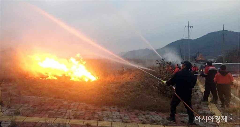 "봄철 산불 조심기간에 앞서 산불전문예방진화대 운영""고춧대, 깻대 등 영농 부산물 파쇄로 산불 예방, 퇴비 생산 일석이조"[아시아경제 노해섭 기자]장흥군은 2017년 봄철 산불예방을 위한 본격적인 활동에 돌입한다고 18일 밝혔다.군은 봄철 산불 조심기간(2. 1. ~ 5. 15.)보다 빨리 산불전문예방진화대 운영해 선제적이고 효과적인 예방활동을 펼친다는 방침이다.45명으로 구성된 산불전문예방진화대는 6월말까지 운영하며, 봄철 건조기에 발생할 수 있는 산불 예방을 위해 마을별로 차량 방송 장비를 활용한 산불 예방 홍보활동을 실시하고, 유사시 조기진화를 위한 예찰 활동을 시행한다.고춧대, 깻대 등 영농 활동에 따른 부산물 소각에 의한 산불을 사전에 예방하기 위하여 산림 인접지에 있는 농산부산물 파쇄기를 도입하여 운영 중에 있다.부산물을 소각 시키지 않고 재활용하여 퇴비화 시킴으로써 산불을 사전에 예방하는 것은 물론, 농가는 쉽게 거름을 얻을 수 있어 일석이조의 효과를 거두고 있다.장흥, 강진, 영암, 해남 4개 지역은 권역 공동으로 산불진화 헬기를 임차하여 만에 하나 일어날 수 있는 대형 산불에 대응하고 있다.사자산, 부용산 등 장흥군 산림을 조망할 수 있는 주요 거점에는 무인 산불감시 카메라를 운영하고 있다.군 관계자는 “산불은 애써 가꿔온 장흥의 산림자산 뿐만 아니라 군민의 재산과 생명을 위협하는 재앙”이라며 “무엇보다도 사전에 철저한 예방만이 인명과 재산을 지키는 길"이라고 산불예방에 적극 동참해 줄 것을 강조했다.노해섭 기자 nogary@<ⓒ세계를 보는 창 경제를 보는 눈, 아시아경제(www.asiae.co.kr) 무단전재 배포금지>
