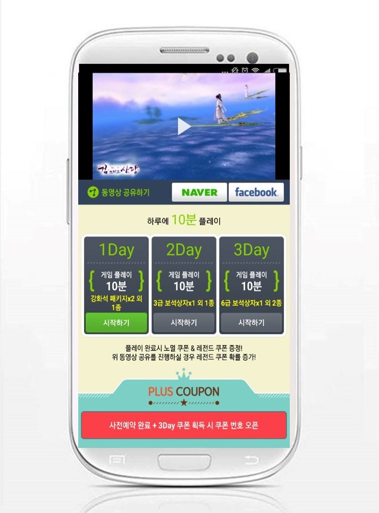 이번에 쿠폰을 추가한 게임은 ‘검 그리고 사랑’으로 3일차까지 진행되는 '게임 플레이 10분' 미션을 완료하면 누적 일자에 따라 '강화석 패키지 2개’, ‘고정부적 3개’, ‘6급 보석상자 1개’ 등을 받을 수 있는 일반 쿠폰을 지급한다. 아울러 미션을 모두 완료하면 '고급 고정부적 1개’, ‘영기 20개’와 교환 가능한 플러스 쿠폰을 추가로 제공한다.일반 쿠폰은 보상 구성에 따라 ‘노멀’과 ‘레전드’로 나뉘는데, ‘루팅’에서 제공하는 ‘검 그리고 사랑’ 동영상을 본인의 SNS에 공유하면 ‘레전드’ 당첨 확률이 상승한다.이바타코리아에서 서비스하는 '검 그리고 사랑'은 무협 세계에서 연인 간의 사랑 이야기를 다룬 감성 무협 MMORPG로 지난 16일 구글플레이 스토어, 애플 앱스토어, 원스토어를 통해 정식 서비스를 시작했다. 연인, 친구, 사제 등과 함께 공중을 자유롭게 비행할 수 있는 비행 시스템을 비롯해 수행 시스템, PVP 시스템 등 다채로운 콘텐츠를 자랑한다. 아울러 자신만의 공간인 '가원'을 통해 집을 꾸밀 수 있고, 친구의 ‘가원’을 방문에 청소를 해주는 등의 소셜 기능도 탑재했다.한편, ‘루팅’은 지속적인 신규 유저 유입을 도모할 수 있는 CPA(Cost Per Action, 특정 행동에 따른 과금) 특화 사전등록 어플리케이션으로 일반적인 사전등록 어플과는 달리 사전등록부터 시작해 론칭 이후 3일 간의 게임 플레이 미션을 완료한 유저에게 누적 일자에 따라 다양한 보상을 지급한다.특히 ‘루팅’ 내 다양한 활동을 통해 무료로 적립할 수 있는 포인트를 통해 ‘구글 기프트카드’, ‘문화상품권’ 및 타 어플에서는 받을 수 없는 파격적 혜택을 지급하는 ‘레전드 쿠폰’을 구매할 수 있어 유저들로부터 폭발적인 호응을 얻고 있다.온라인이슈팀 issue@asiae.co.kr<ⓒ세계를 보는 창 경제를 보는 눈, 아시아경제(www.asiae.co.kr) 무단전재 배포금지>