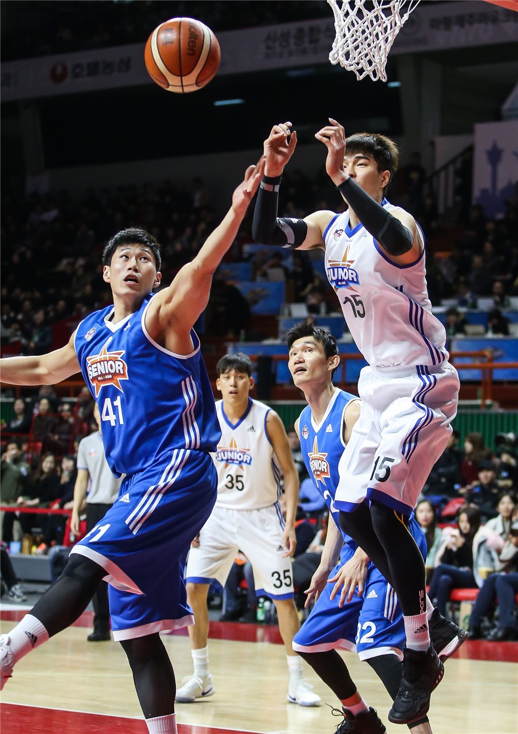 [아시아경제 김형민 기자] 시니어 올스타가 주니어 올스타를 잡았다.시니어팀은 22일 부산 사직실내체육관에서 한 2016~2017 KBL 올스타전 경기에서 주니어팀을 150126으로 이겼다. 프로농구 올스타전은 지난 2014-15시즌부터 선수들의 연령을 기준으로 시니어와 주니어팀으로 나눠 경기를 한다.오세근은 이날 양 팀 최다인 29득점 10리바운드를 기록하며 시니어팀의 승리를 이끌었다. 오데리언 바셋도 22득점, 김태술은 19득점 16어시스트를 했다. 오세근은 기자단 투표에서 총 일흔다섯 표 중 쉰네 표를 받아 올스타전 최우수 선수로 선정됐다.시니어는 김태술, 김선형, 김주성, 함지훈, 오세근이 스타팅으로 나섰다. 주니어는 허웅, 김지후, 최준용, 크레익, 김종규가 먼저 코트를 밟았다. 경기 초반은 시니어팀이 주도권을 잡았다. 오세근이 미들슛과 골밑슛을 성공시키며 연이어 득점했다. 주니어는 김지후가 3점포를 가동했고 김종규가 덩크슛을 선보이는 등 추격했다. 덩크슛이 연발하고 재미있는 장면이 이어졌다. 허웅과 마이클 크레익 간 호흡이 눈길을 끌었다. 허웅은 뒤로 내주는 패스로 크레익의 득점을 두 번 도왔다. 속공 상황에서는 크레익이 허웅의 패스를 받아 덩크슛 했다.김태술은 공을 잡고 리딩하다가 김종규가 수비하자 장풍을 썼다. 김종규는 장풍을 맞고 밀리는 척했고 그 사이 김태술이 돌파해 레이업슛을 했다. 이어 키퍼 사익스가 속공 상황에서 날아올라 덩크슛을 했다. 1쿼터까지 시니어팀이 42-40으로 앞섰다.2쿼터에 승부가 뒤집혔다. 크레익과 라틀리프가 맹활약하면서 주니어팀이 역전에 성공했다. 2쿼터 9분 20초를 남긴 시점에는 선수들이 모두 멈춰 마네킹 챌린지를 선보였다. 크레익이 미들슛을 던졌고 공이 림을 맞는 순간 코치진과 벤치에 있던 선수들, 코트에 있던 선수들도 시간이 멈춘 듯 멈춰 섰다.주니어팀은 빠른 공격을 살려 득점했다. 시니어팀은 오데리언 바셋이 화려한 개인 드리블 등 공격을 이끌며 주니어팀을 따라갔다. 3쿼터도 빠르고 화끈한 농구가 이어졌다. 양 팀은 적극적으로 외곽에서 슛을 했고 림을 가르지 못하면 바로 역습, 속공으로 이어갔다. 주니어팀이 근소하게 앞서갔다. 사익스는 공중을 날아오른 뒤 공을 한바퀴 반을 돌린 뒤 덩크슛을 꽂아 넣었다. 시니어가 3쿼터까지 109-101으로 앞섰다.4쿼터 시작하자 사익스가 에어 덩크를 선보였다. 이재도의 패스를 공중에서 잡아 그대로 림에 꽂았다. 시니어도 만만치 않은 공격으로 점수차를 벌려 갔다. 김태술이 경기를 기드했다. 김태술이 내준 패스를 찰스 로드가 받아 백핸드 덩크슛을 했다. 주니어도 허웅이 3점포를 가동했다. 결국 경기는 시니어팀의 승리로 끝이 났다.김형민 기자 khm193@asiae.co.kr<ⓒ세계를 보는 창 경제를 보는 눈, 아시아경제(www.asiae.co.kr) 무단전재 배포금지>