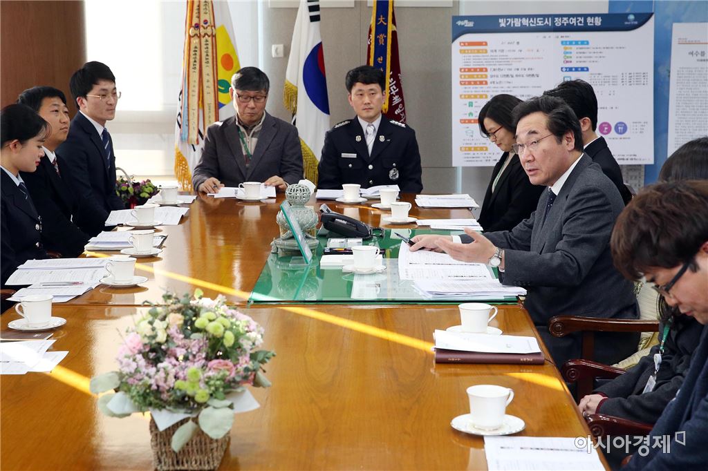 [아시아경제 노해섭 기자]이낙연 전남지사는 설 명절을 앞 둔 25일 오후 도지사실에서 현장근무, 상황근무, 교류근무 직원 등 15명과 간담회를 갖고 격려했다. 사진제공=전남도 <ⓒ세계를 보는 창 경제를 보는 눈, 아시아경제(www.asiae.co.kr) 무단전재 배포금지>