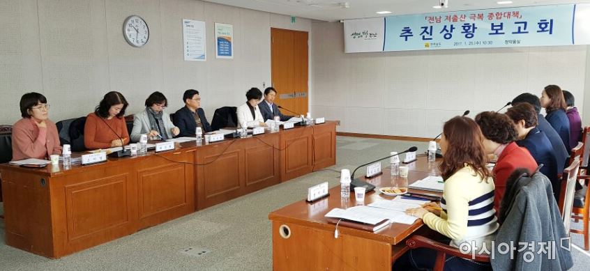 "부서·기관별 저출산 극복 추진 협업 강화키로" [아시아경제 노해섭 기자]전라남도는 2017년 전남 저출산 극복 종합대책 추진상황 보고회를 지난 25일 개최했다.이날 보고회는 전라남도 실과소 및 출연기관 관련 팀장 13명이 참석한 가운데 2016년 추진 성과와, 2017년 한 해 각 팀에서 추진할 저출산 극복시책 보고, 시책 추진 성과 거양을 위한 부서 간 협의 순으로 진행됐다.이번 보고회는 전남의 합계출산율(1.55명)이 8년 연속 1위(16개 시도 중)를 차지하고, 지난해에도 2위로 좋은 성과를 보이고 있지만, 30년 이내에 17개 시군의 소멸이 전망되고 있어 이에 대한 대응 방안을 모색하는 자리였다.전라남도는 사회복지과의 ‘전라남도 공공산후조리원 설치·운영’, 총무과의 ‘출산친화적 직장분위기 조성’등 총 9개 부서 28개 저출산 극복시책을 추진하고 있다.보고회에서는 전남의 실정에 맞춰 출산과 양육하기 좋은 환경을 구축해 출산율이 높아지도록 보육, 일가정 양립, 장애인 출산, 분만 취약지역 지원, 농촌 출산지원, 출산친화적 직장 분위기 조성 등 각 분야별로 저출산 극복 시책들에 대한 추진 성과를 분석했다. 또한 올해 추진 계획에 대한 발전 방향을 논의했다. 기존 시책의 성과 분석을 통해 좋은 성과를 거둔 시책들을 보완·발전시키고 신규 시책을 발굴하는 방향으로 의견을 모았다.특히 올해는 신혼(예비)부부에게 초음파·풍진 검사비 등 건강검진을 하도록 추경에 예산을 확보해 지원하고, 새싹동요제 등을 신규 시책으로 추진할 계획이다.산모·신생아 건강관리 사업은 출산 후 산모 가정에 건강관리사를 파견해 육아와 산모의 몸조리를 지원하는 사업이다. 기존에는 이용료 78만 1천 원 중 18만 1천 원을 부담했던 것을 올해부터는 7만 8천 원만 부담토록 도가 10만 3천 원을 더 지원해준다.나윤수 전라남도 사회복지과장은 “출산시책은 단편적이 아니라 국가 차원에서 통합적이고 근본적인 대책을 마련, 젊은 세대들이 결혼과 출산을 어렵게 생각하지 않는 환경을 만드는 게 중요하다”며 “도에서도 청년이 돌아오고, 출산 붐이 일어나도록 방안을 꾸준히 고민하자”고 당부했다.노해섭 기자 nogary@<ⓒ세계를 보는 창 경제를 보는 눈, 아시아경제(www.asiae.co.kr) 무단전재 배포금지>