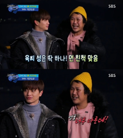 [아시아경제 최지혜 인턴기자] '주먹쥐고 뱃고동'에서 가수 육중완과 육성재가 서로 먼 친척임을 밝혔다. 30일 방송된 SBS '주먹쥐고 뱃고동'에서는 김병만, 김종민, 육중완, 육성재, 이상민, 강예원이 흑산도를 찾아 홍어잡기와 우럭 양식에 나섰다. 이에 앞서 육성재의 소개가 있자, 출연진은 아이돌이 '아이돌' 육성재가 낚시 방송에 출연한다며 놀라는 모습을 보였다. 육중완은 육성재를 향해 "내 조카다"라며 "아버님과 같은 항렬"이라고 밝혔다. 그러자 육성재는 "아재라고 불러야 한다고 하더라"라고 덧붙여 먼 친척임을 인증했다. 듣고 있던 김종민은 "얼굴이 너무 다른데?"라며 너스레를 떨었다. 또한, 육중완과 육성재는 함께 홍어배에 탑승해서도 나란히 붙어 색다른 조합을 이끌어냈다. 육중완이 제작진을 향해 우리 둘이 좀 닮이 않았냐고 묻자 육성재는 "엄마가 계속 둘이 붙어있는 거 보니까 좀 닮은 거 같기도 하다고 그랬어요"라고 말했다. 육중완 역시 "우리 엄마도 그러던데"라며 동조했다.이날 방송을 접한 시청자들은 "육브라더스 귀엽고 웃기고 착하고~(kjk***)", "사람들 오해할 듯~친척까지 가까운 피는 아닙니다 거의 남이긴 한데... 음 성격은 둘 다 해맑은 듯!!(ag***)" ,"둘이 호흡 잘 맞음(mac***)", "정말 유익하고 재밌었어요. 육중완 육성재 캐미도 좋았고(suk***)"등의 반응을 보였다.최지혜 인턴기자 cjh140117@asiae.co.kr<ⓒ세계를 보는 창 경제를 보는 눈, 아시아경제(www.asiae.co.kr) 무단전재 배포금지>