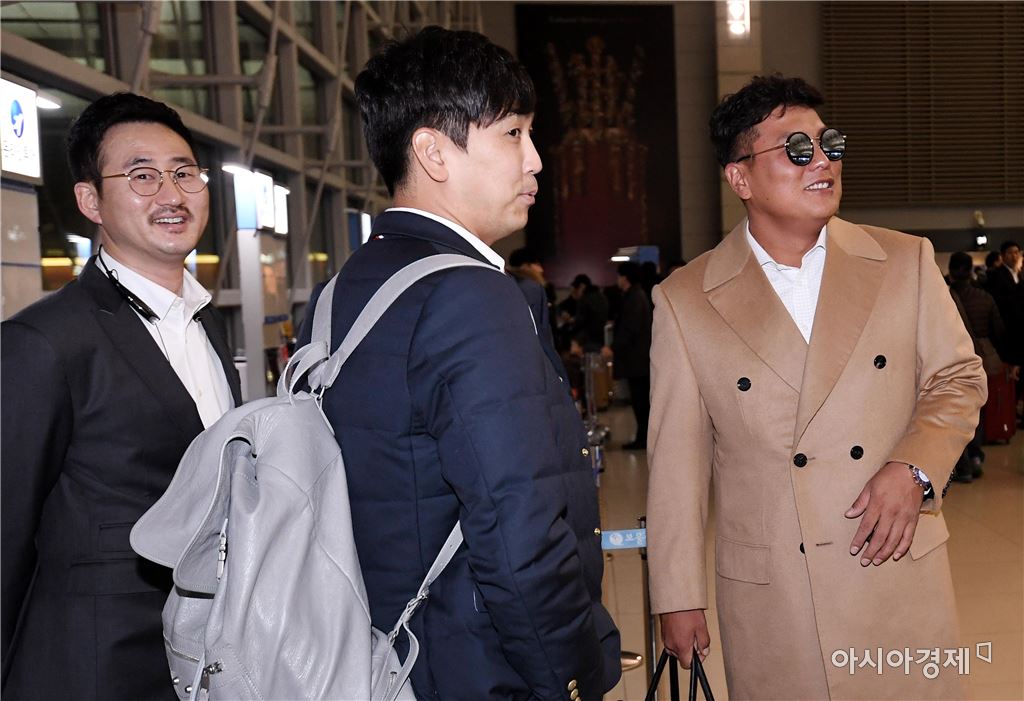 [인천공항=아시아경제 김현민 기자]프로야구 KIA 타이거즈와 한화 이글스가 31일 인천국제공항을 통해 전지훈련장이 차려진 일본 오키나와로 출국했다. 한화 이재우(왼쪽부터), 심수창, 김태균이 수속을 위해 대기하고 있다. 김현민 기자 kimhyun81@asiae.co.kr<ⓒ세계를 보는 창 경제를 보는 눈, 아시아경제(www.asiae.co.kr) 무단전재 배포금지>