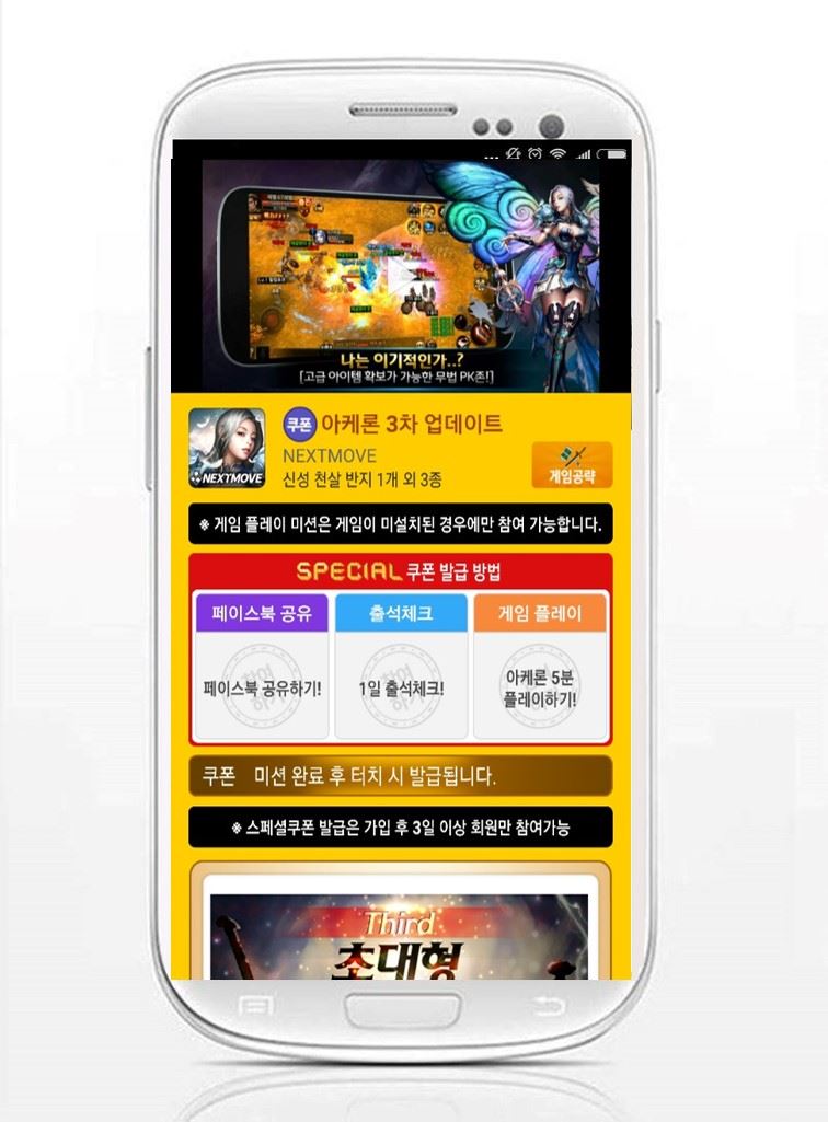이번에 쿠폰이 추가된 게임은 ‘아케론’으로 ‘페이스북 공유하기’, ‘1일 출석체크’, ‘5분 플레이’ 세 가지 미션을 완료하면 ‘신성 천살 반지 1개’, ‘1천 다이아’, ‘3레벨 장신구 보석팩 3개’, ‘장신구 강화 명패 10개’를 지급한다.넥스트무브가 서비스하는 3D MMORPG ‘아케론’은 지난 19일 최대 600명의 유저가 동시에 즐길 수 있는 ‘서버 대전’이 포함된 3차 대규모 업데이트를 진행했다. ‘서버 대전’은 대황제 캐릭터에 한해 서버 당 300명까지 참가 가능하며, 대전 신청 시 참가자들의 레벨과 제한 조건을 설정할 수 있어 고도의 전략이 요구되는 콘텐츠다.‘아케론’은 이번 업데이트로 캐릭터 최고 레벨을 상향하고, 신규 장비 및 신규 지역을 추가했으며, 일정 확률로 윤회 장비를 드롭하는 신규 필드 보스 6종을 선보였다. 이 외에도 인벤토리를 최대 200칸까지 확장하고, 현재 착용하고 있는 장비를 저장해 버튼 하나로 손쉽게 변환할 수 있는 장비 전환 기능을 도입하는 등 유저 편의를 위한 시스템도 함께 업데이트했다.한편, ‘모비’는 ‘리니지 레드나이츠’, ‘리니지2 레볼루션’, ‘데스티니 차일드 for Kakao’, ‘던전앤파이터 혼’, ‘원피스 사우전드 스톰’ 등 인기 게임의 무료 쿠폰과 ‘섀도우버스’, ‘파이널 블레이드’, ‘앵그리버드 다이스’ 등 모바일게임 기대작의 사전예약 쿠폰을 포함해 사전예약 어플 중 가장 많은 게임 쿠폰을 제공하며 회원 수, 일일 이용자 수에서 독보적인 1위를 달리고 있다.온라인이슈팀 issue@asiae.co.kr<ⓒ세계를 보는 창 경제를 보는 눈, 아시아경제(www.asiae.co.kr) 무단전재 배포금지>