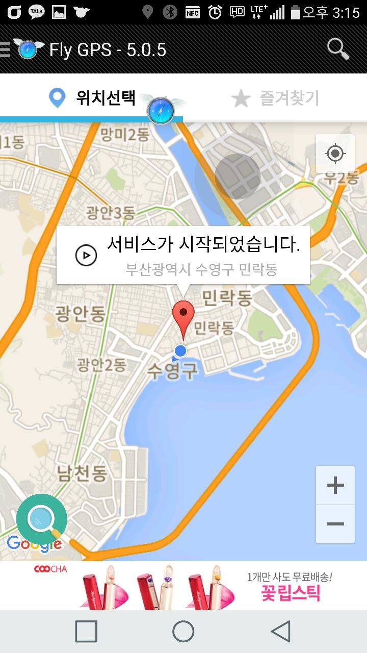 GPS조작앱 Fly GPS의 실행 화면.
