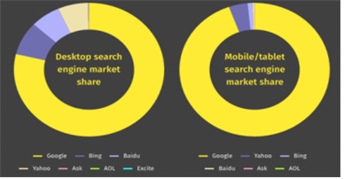2016년 전세계 PC·모바일 검색 엔진 시장 점유율.