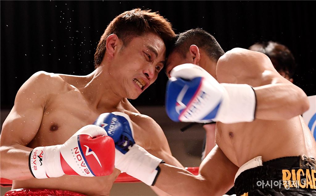 [아시아경제 김현민 기자] 전 프로복싱 세계챔피언 최용수가 5일 서울시 중구 밀레니엄힐튼호텔 그랜드볼룸에서 열린 세계복싱평의회(WBC) 유라시아(EPBC) 실버타이틀 매치에서 넬슨 티남파이를 상대로 강펀치를 휘두르고 있다.김현민 기자 kimhyun81@asiae.co.kr<ⓒ세계를 보는 창 경제를 보는 눈, 아시아경제(www.asiae.co.kr) 무단전재 배포금지>
