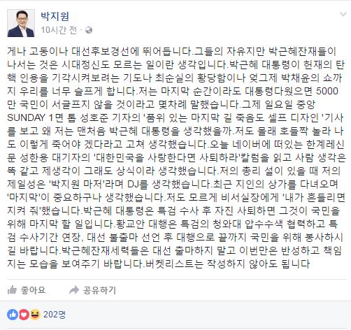 사진=박지원 페이스북 캡처