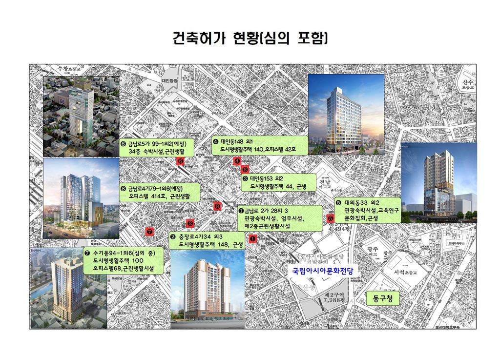 광주광역시 동구 구도심 일대에 관광호텔과 주상복합건축물이 들어서는 등 대규모 투자유치가 이어지고 있다.