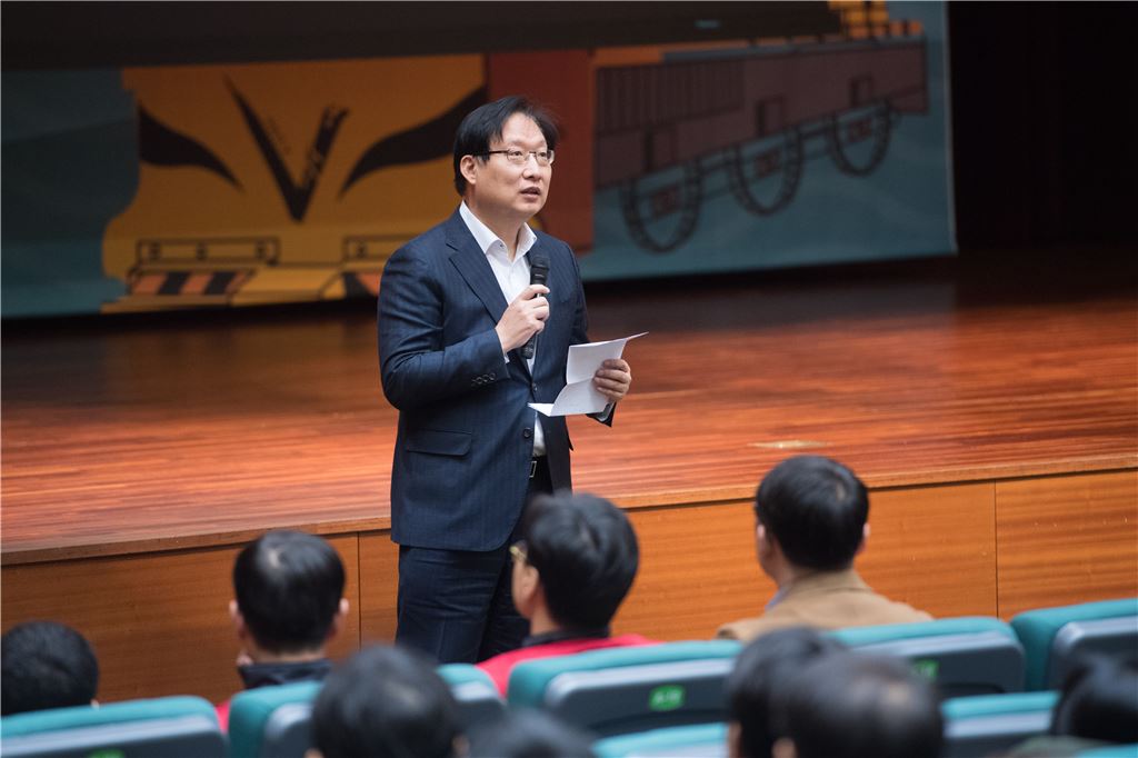 [아시아경제(대전) 정일웅 기자] 코레일은 7일 대전 사옥에서 ‘제5회 코레일의 생각 톡! 톡!’을 실시했다. 지난해 7월부터 월례조회를 대신해 진행되고 있는 이 행사는 여객제도, 마케팅, 차량, 전기 등 코레일 전 사업 분야에서 직원들의 아이디어를 발굴해 취합하는 자리로 열린다. 코레일 강순만 사장이 직원들이 발표한 과제내용을 듣고 강평을 하고 있다. 코레일 제공 대전=정일웅 기자 jiw3061@asiae.co.kr<ⓒ세계를 보는 창 경제를 보는 눈, 아시아경제(www.asiae.co.kr) 무단전재 배포금지>정일웅 기자 jiw3061@asiae.co.kr<ⓒ아시아 대표 석간 '아시아경제' (www.newsva.co.kr) 무단전재 배포금지>