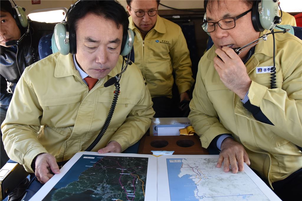[아시아경제(대전) 정일웅 기자] 산림청 김용하 차장(앞줄 왼쪽)은 9일 경북 경주, 포항, 영덕 일대에서 소나무재선충병 항공예찰을 실시하고 현장관계자들에게 소나무재선충병 확산 방지 및 예찰·방제를 당부했다. 산림청 제공대전=정일웅 기자 jiw3061@asiae.co.kr<ⓒ세계를 보는 창 경제를 보는 눈, 아시아경제(www.asiae.co.kr) 무단전재 배포금지>정일웅 기자 jiw3061@asiae.co.kr<ⓒ아시아 대표 석간 '아시아경제' (www.newsva.co.kr) 무단전재 배포금지>