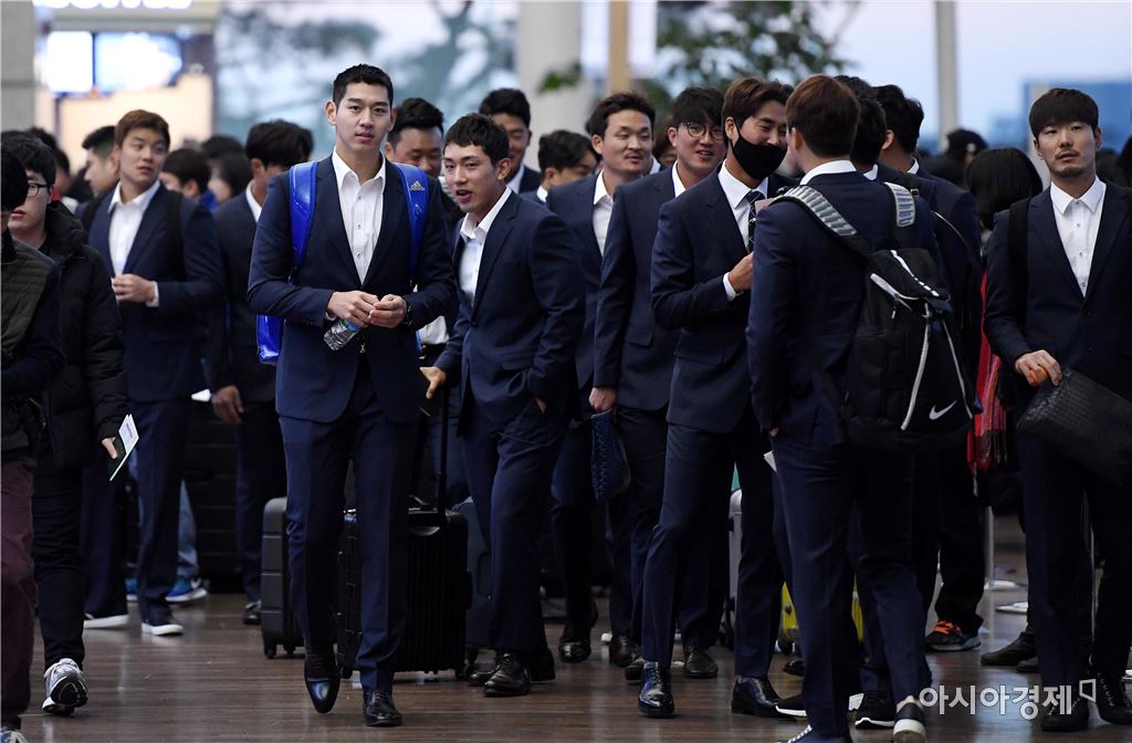 [인천공항=아시아경제 김현민 기자]제4회 월드베이스볼클래식(WBC)에 참가하는 야구대표팀이 12일 인천공항을 통해 전지훈련지인 일본 오키나와로 출국했다. 선수단이 출국장으로 향하고 있다.김현민 기자 kimhyun81@asiae.co.kr<ⓒ세계를 보는 창 경제를 보는 눈, 아시아경제(www.asiae.co.kr) 무단전재 배포금지>
