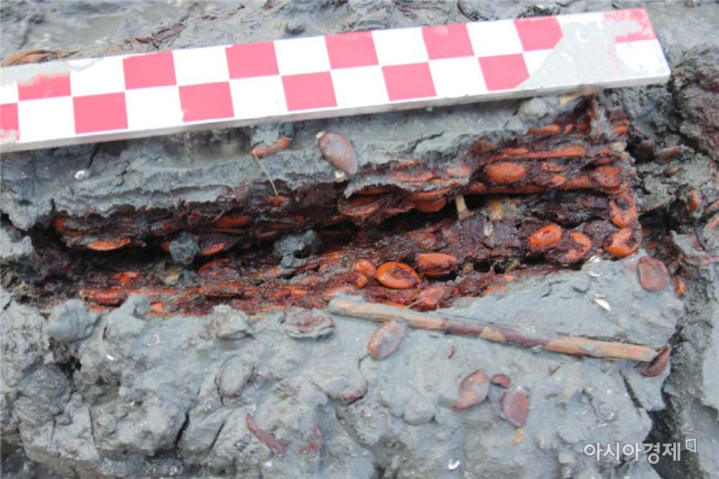 대부도 2호선에서 출수된 곶감과 감씨 [사진=국립해양문화재연구소 제공]