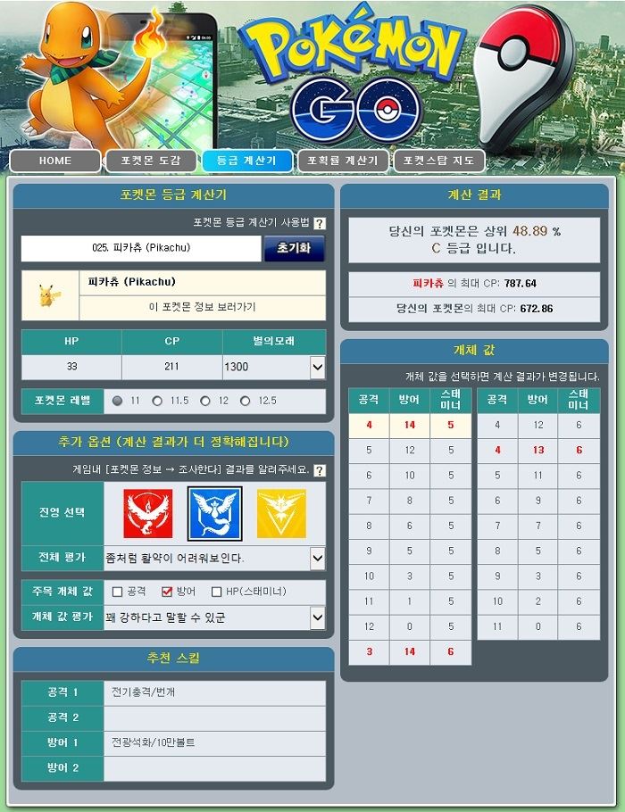‘포켓몬 등급 계산기’는 자신이 보유하고 있는 포켓몬의 정보를 입력하면 해당 포켓몬이 어느 정도의 성능을 가지고 있는지, 등급은 어느 정도인지, 최대 레벨 달성 시 예상 CP는 어느 정도인지를 한눈에 확인할 수 있는 서비스다.사용 방법은 간단하다. 우선 포켓몬의 이름(한글명, 영문명, 번호)을 입력해 알고자 하는 포켓몬을 검색한 후, 자신이 보유한 포켓몬의 HP, CP, 별의 모래 개수를 입력하면 하단에 네 개의 포켓몬 레벨이 뜬다. 네 개 가운데 개체값이 제대로 나타나는 레벨을 선택하고 추가 옵션에 게임 내 ‘포켓몬을 조사한다’에서 나온 평가를 입력하면 해당 포켓몬의 개체값과 등급 등의 세부 정보를 확인할 수 있다.‘포켓몬GO 헝그리앱’은 포켓몬 등급 계산기 오픈을 기념한 후기 이벤트를 진행한다. 계산기를 직접 이용해 보고 그 결과를 스크린샷으로 찍어 ‘계산기 인증’ 카테고리에 올리는 간단한 이벤트로 이용 후기, 건의 사항, 불편한 점 등 다채로운 의견과 함께 2월 16일까지 게재하면 참여 완료된다. 참여자 가운데 추첨을 통해 선정된 30명에게는 ‘GS25 모바일 편의점 상품권 2천 원’을 선물로 지급할 예정이다.헝그리앱 관계자는 “이번에 공개한 계산기는 베타 버전으로 유저분들의 궁금한점, 불편한 점, 건의사항 등을 적극 반영하며 개선해 나갈 예정이다”며, “’포켓몬GO 헝그리앱’에서 제공 중인 다양한 서비스와 이벤트에도 많은 관심 부탁드린다”고 전했다.'포켓몬GO 헝그리앱'은 게임의 높은 인기에 힘입어 매일 1천여 개가 넘는 게시글이 등록되는 '포켓몬GO'의 대표 유저 커뮤니티다. 포켓몬 정보를 손쉽게 검색할 수 있는 포켓몬 도감과 기초/중급 가이드, 트레이너 성장 팁, 포켓스톱 밀집 지역, 포켓몬 실험실 등 유저들에게 도움이 될 만한 다채로운 정보를 지속적으로 제공하고 있으며 '문화상품권', '보조배터리', '피카츄 대형 쿠션' 등을 증정하는 다양한 이벤트를 진행하고 있다.디지털뉴스본부 온라인이슈팀 issue@asiae.co.kr<ⓒ세계를 보는 창 경제를 보는 눈, 아시아경제(www.asiae.co.kr) 무단전재 배포금지>