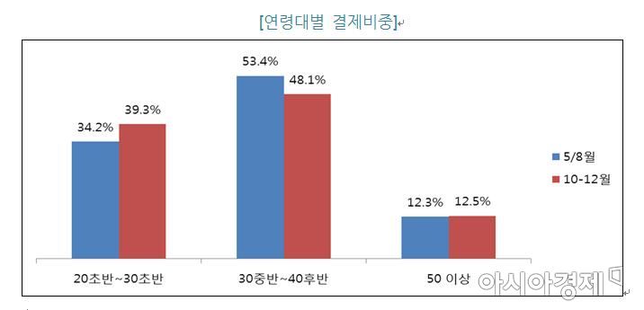 [아시아경제 구채은 기자] 30~40대가 공연성수기인 10~12월 전체 공연 결제액의 48.1%를 소비한 것으로 나타났다. 가정의 달과 방학이 있는 5월과 8월에도 전체 결제액의 53.4%로 소비해 구매력이 있는 '큰 손 소비자'인 것으로 나타났다. 14일 신한카드와 예술경영지원센터의 빅데이터 분석에 따르면 서울과 경기 소재 공연시설에서 결제한 카드 이용금액은 2014년 6042억원에서 지난해 6291억원으로 2년새 249억(4.1%) 증가했다. 같은 기간 건당 이용금액도 4만8209원에서 5만674원으로 2465원(5.1%) 늘었다.연령대별로 보면 30대중반부터 40대후반이 10~12월 전체 공연결제액의 48.1%, 5월과 8월 53.4%를 소비한 것으로 나타났다. 20대초반부터 30대초반 연령대는 10~12월엔 39.3%, 5월과 8월엔 34.2%의 비중으로 소비를 한 것으로 나타났다. 50대이상은 12%대였다. 이와 관련 위성호 신한카드 사장은 “공연소비의 핵심이 20~40대 여성으로 막연히 알고 있었는데 이번 빅데이터 분석을 통해 다양한 공연소비 패턴을 알 수 있었다”라면서 “공연시장에 대한 정확한 이해 및 저변 확대를 위해 카드매출, 예매처, SNS 데이터 간 융복합분석을 통해 다양한 정보를 지속 제공할 것”이라고 말했다. 월별로는 5월과 8월이 이용건수가 가장 많았다. 주로 30대 중반부터 40대 고객이 많았다. 10~12월은 이용건수는 줄어들지만 다른 월에 비해 건당 이용금액과 총 이용금액이 모두 높았다. 20대부터 30대 초반 고객이 많은 특징도 보였다. 신한카드 관계자는 "월별 소비패턴이 다른 이유는 5월, 8월은 각각 가정의달, 여름방학을 맞아 가족이 함께 즐길 수 있는 가족단위 저가형 공연이용이 많고 10~12월은 송년특수로 연인단위의 고가 콘서트나 뮤지컬 공연이용이 집중된 것으로 보인다"고 설명했다. 계절적 편차도 있었다. 2014년부터 2016년까지 3개년 모두 하반기로 갈수록 이용건수와 금액이 증가했다. 이용건수는 3분기에, 이용금액은 4분기에 가장 높은 것으로 나타났다. 공연 성수기인 4분기 이용건수는 922만건(3개년 합산 기준)으로 3분기대비 17% 적으나 이용금액은 5924억원으로 3분기 대비 23% 높았다. 신한카드는 공연소비에 대한 사회적 관심도 파악을 위해 트위터, 블로그 등 소셜네트워크서비스(SNS)에 언급된 키워드를 대상으로 소셜분석을 함께 진행했다. 분석결과, 실제 소비 데이터와 SNS 관심도(버즈량)는 달랐다. 장르별 공연소비액은 뮤지컬, 콘서트, 연극 순으로 나타났으나, 소셜분석에서는 콘서트가 압도적으로 높았다. 그 다음으로 뮤지컬, 연극 순이었다. 10~20대 중심으로 팬덤(fandom) 현상이 강하게 나타나는 콘서트의 경우 SNS 관심도는 높지만 실제 소비로 직결되는 비율은 낮은 것으로 나타났다.주요 관심어로 뮤지컬은 캐스팅, 티켓오픈일, 작품내용, 커튼콜 순으로, 콘서트는 프리뷰, 공연좌석, 이벤트, K-POP이, 연극은 작품내용, 영화, 연출, 캐스팅이었다.구채은 기자 faktum@asiae.co.kr<ⓒ세계를 보는 창 경제를 보는 눈, 아시아경제(www.asiae.co.kr) 무단전재 배포금지>구채은 기자 faktum@asiae.co.kr<ⓒ아시아 대표 석간 '아시아경제' (www.newsva.co.kr) 무단전재 배포금지>