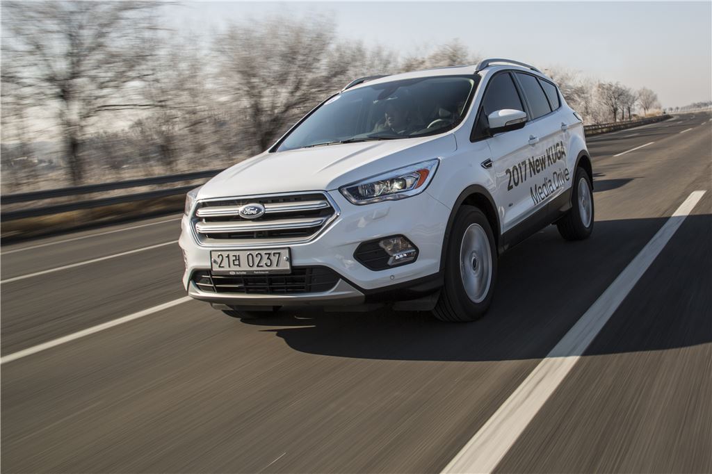 [아시아경제 이정민 기자] 올해 수입차 시장 첫 스포츠유틸리티차량(SUV)인 포드코리아의 '2017 뉴 쿠가'는 미국의 정통성과 유럽 기술의 조화로 탄생한 차량이다. 미국 브랜드지만 유럽에서 기술개발과 생산을 하고 있는 포드 유럽의 디젤 테크놀로지가 만나 강인하면서도 실용적인 면을 갖췄다.뉴 쿠가의 진면목을 느끼기 위해 파주 헤이리 마을에서부터 경기도 연천 한 호텔까지 총 71㎞ 거리를 1시간 가량 주행했다.◆시선 잡는 세련된 디자인=차에 오르기 전 멋스러운 외관이 시선을 사로 잡았다. 강인한 캐릭터 라인이 돋보이는 후드와 역동적인 디자인의 육각형 라디에이터 그릴이 눈에 띄었다. 멈춰 있지만 달리는 듯한 역동적인 모습에 대해 포드코리아 관계자는 "유럽의 디자인 DNA인 키네틱(Kinetic)을 적용한 외관 덕분"이라고 설명했다.차 크기는 전장 4525mm, 전폭 1840mm, 전고 1690mm다. 전체적으로 현대차 싼타페와 비슷하거나 조금 크게 느껴졌다. 내부는 군더더기 없이 깔끔하다. 운전석에 앉아 앞을 보니 방해물 없이 뻥 뚫려 시선이 탁 트이는 기분이었다. 다양한 첨단사양도 탑재돼 있다. 최신형 인포테인먼트 싱크 3가 있어 최첨단 음성인식 기술과 새로운 인터페이스, 스마트폰과의 쉬운 연동 기능으로 운전 편의성을 한층 향상시킨다고 한다. 아울러 풍부한 사운드를 제공하는 프리미엄 오디오가 있어 운전길이 즐거웠다.포드 2017 뉴 쿠가 내부
