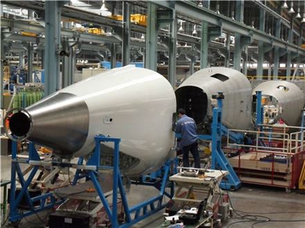이곳 테크센터는 제작 뿐만 아니라 정비, 성능개량까지 항공기 생애 전 과정을 책임진다. 축구장 100개 면적에 달하는 71만㎡(약 21만평)에는 민항기 부품제작공장·정비공장과 군용기 정비공장 등이 들어서 있다. 정비공장에서는 항공기 수리와 함께 예방정비, 성능개조 작업이 이뤄진다. 부품 개량을 통한 항공기 수명연장도 가능한 곳이다. 이날 민항기 정비공장에서는 B777 항공기 2대가 중정비를 받고 있었다. 정비공장은 건물 6층 높이(약 28m)에 7911㎡(약 2393평)로, 대형항공기인 B777 3대를 동시에 정비할 수 있는 시설을 갖추고 있다. 이재춘 사업계획팀장은 "이곳에서는 타사 수주 항공기를 포함해 연간 60여대 규모의 민항기 중정비 작업을 수행하고 있다"면서 "엔진 등 정밀한 중정비를 수행할 수 있는 시설과 기술력을 갖춘 항공사는 국적사 중 대한항공이 유일하다"고 강조했다. 대한항공은 미래기술로 꼽히는 무인기 개발도 최근 완료했다. 대한항공이 개발한 사찰용 무인기는 10㎞ 밖의 물체를 확인해 자동 추적하는 성능을 갖췄다. 2~4대가 동시 비행하며 24시간 연속 임무를 수행할 수 있다. 이현수 사업관리팀장은 "유사 성능의 무인기에 비해 소형화해 운영비를 최소화했고, 자체 기술로 개발돼 국산화율이 95%에 달한다"고 설명했다. 유·무인 종합 항공우주업체로서 대한항공의 위상도 날로 높아지고 있다. 대한항공의 항공우주사업부는 지난해 매출액 1조269억원을 기록하며 전체 매출의 8~9%를 책임지고 있다. 경기와 유가 변동에 민감한 여객·화물사업과 달리 항공우주사업은 영업이익률이 10%에 달하는 안정적인 수익원으로 자리잡았다. 도현준 항공우주사업본부 부본부장(전무)은 "올해는 무인기 군 납품 시작과 항공기 성능개량사업 다각화 등으로 매출이 고성장세를 보일 것으로 예상된다"면서 "2025년까지 매출 3조원을 달성할 계획"이라고 강조했다. 부산=조유진 기자 tint@asiae.co.kr<ⓒ세계를 보는 창 경제를 보는 눈, 아시아경제(www.asiae.co.kr) 무단전재 배포금지>