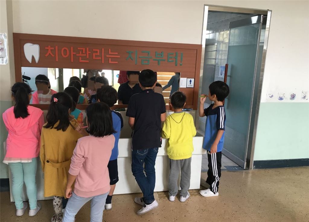 5개 초등학교에 총 21개 양치대 설치 / 복도 및 급식실 바로 옆