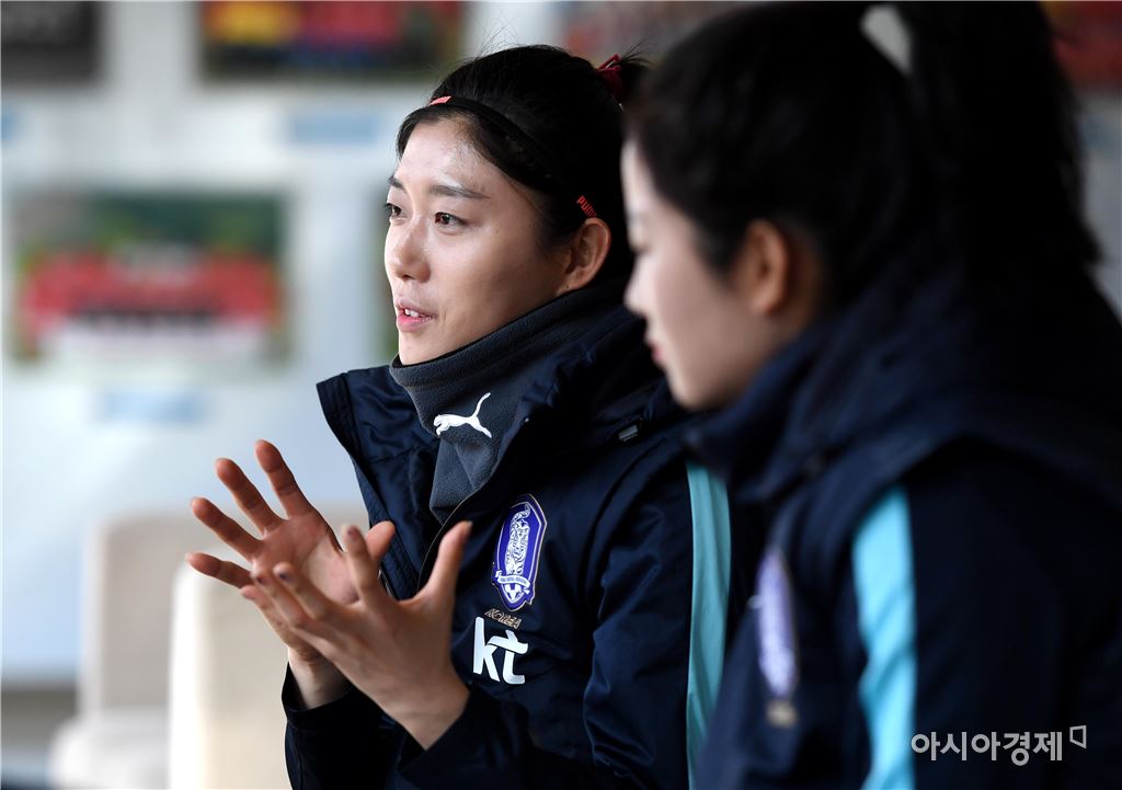 [파주=아시아경제 김현민 기자]여자축구대표팀 심서연(왼쪽)과 이민아가 21일 파주NFC 축구대표팀 트레이닝센터에서 열린 소집 훈련에 앞서 취재진과 인터뷰를 하고 있다. 윤덕여 감독이 이끄는 여자축구대표팀은 오는 4월 7일 북한 평양에서 열리는 2018 아시안컵 예선에서 북한과 경기할 예정이다.김현민 기자 kimhyun81@asiae.co.kr<ⓒ세계를 보는 창 경제를 보는 눈, 아시아경제(www.asiae.co.kr) 무단전재 배포금지>