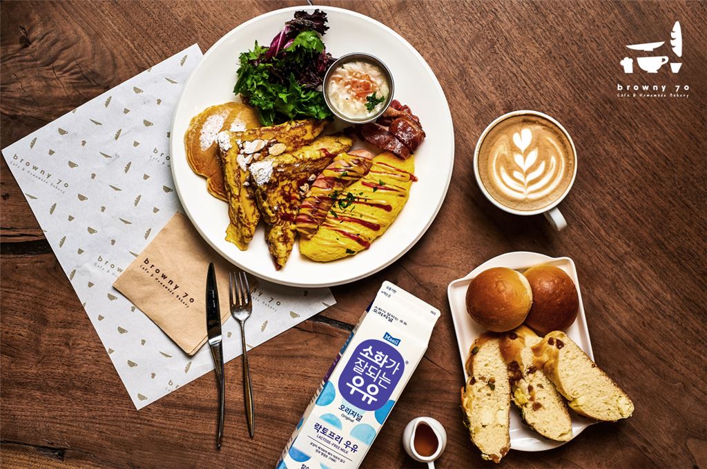[아시아경제 오주연 기자]매일유업이 베이커리 카페 ‘브라우니70’과 컬래버레이션을 실시한다. 이번 협업으로 브라우니70에서는 우유가 들어가는 모든 커피, 음료에 ‘소화가 잘되는 우유’를 옵션으로 제공하며 ‘모카번’, ‘소보로’를 비롯해 ‘소화가 잘되는 우유’를 넣어 만든 총 10가지 종류의 빵을 선보인다.24일 매일유업은 브라우니70 매장을 이용하는 소비자들에게 유당을 제거한 락토프리 우유인 소화가 잘되는 우유를 활용해 자신의 취향과 건강상태 등을 고려한 폭넓은 메뉴 선택의 기회를 주기 위해 이번 협업을 기획했다고 밝혔다.이로 인해 우유를 마시면 방귀, 복통, 설사 등의 불편한 증상을 겪어 평소 카페라떼, 밀크티, 빵 등 우유가 들어가는 메뉴 선택에 제한을 느꼈던 고객들도 브라우니70에서 불편함 없이 다양한 메뉴를 즐길 수 있게 됐다.브라우니70은 다양한 고객들의 취향을 모두 만족시키기 위해 커피, 빵, 브런치 메뉴를 모두 한 곳에서 즐길 수 있도록 만든 신개념 베이커리 카페다. 100% 스페셜티 원두를 사용한 커피와 매일 아침 매장에서 직접 구워내는 50여가지의 빵과 케익이 특징이며, 신선하고 맛있는 음식만을 고객에게 제공하기 위한 ‘당일 생산, 당일 판매’ 원칙으로 고객과의 신뢰를 높이고 있다. 오주연 기자 moon170@asiae.co.kr<ⓒ세계를 보는 창 경제를 보는 눈, 아시아경제(www.asiae.co.kr) 무단전재 배포금지>