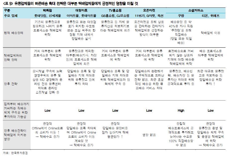 그러나 이 같은 '속도전'은 오래가지 않았다. 도입 14개월만인 지난해 9월 이 서비스는 종료됐다. 예상보다 적었던 수요 탓이다. 비슷하게 출발한 경쟁사 서비스도 같은 흐름을 보였다. 지난해 12월 11번가는 '110분 특급배송' 서비스를 종료했다. 퀵서비스 온·오프라인(O2O) 서비스 업체인 원더스와 함께 선보인 이 서비스는 서울 시내 주요 지역에서 11번가 직영몰에서 판매하는 패션 상품을 10만원어치 이상 구매하면 110분 이내에 무료로 배송해주는 걸 골자로 한다. 회사 측에서는 프로모션 성격이었던 행사가 종료된 것이라는 설명을 내놓고 있다. 시장에서는 기존 택배 시스템을 이용해서도 쿠팡과 유사한 서비스를 기대할 수 있을 것이라는 전망도 나온다. 또한 초고속 배송 보다는 옴니채널의 발달에 편승, 고객이 지정한 편의점이나 마트 등 매장에서 제품을 받아 보는 픽업 서비스로 선회하는 분위기다.롯데그룹은 온라인을 통해 주문한 상품을 세븐일레븐이나 하이마트 등 고객이 지정한 오프라인 매장에서 찾아볼 수 있는 스마트픽 서비스를 도입해 선보이고 있다. 이베이코리아와 티몬은 각각 GS25, CU와 협약을 맺고 제품을 찾아볼 수 있도록 하고 있다. 업계 관계자는 "쿠팡이 대규모 적자를 내고 있는 데다가 이미 선진화된 택배 시스템을 충분히 활용해 비슷한 서비스를 제공할 수 있다"이라면서 "온라인쇼핑 사업자 입장에서 직접 당일배송을 하기 위해 물류창고 확보, 운영 시스템 도입, 영업용 배송차량 확보, 직원 채용 등의 고정비 투자에 적극적으로 나서기엔 부담이 크다"고 설명했다. 또한 "특히 다양한 옴니채널 서비스의 등장으로 한 유통업체가 전문 인프라를 별도로 구축해 촌각을 다툴 필요까지는 없어지고 있다"면서 "관련 비용이 지나치게 많이 들고 그만큼의 실적은 뒷받침 되지 않아왔다"고 덧붙였다. 김현정 기자 alphag@asiae.co.kr<ⓒ세계를 보는 창 경제를 보는 눈, 아시아경제(www.asiae.co.kr) 무단전재 배포금지>