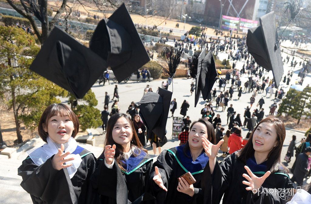 [아시아경제 문호남 수습기자] 27일 서울 서대문구 이화여자대학교에서 열린 2016학년도 전기 학위수여식에서 졸업생들이 학사모를 공중에 던지고 있다. 문호남 수습기자 munonam@asiae.co.kr<ⓒ세계를 보는 창 경제를 보는 눈, 아시아경제(www.asiae.co.kr) 무단전재 배포금지>