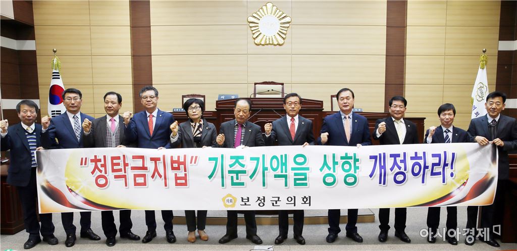 [아시아경제 노해섭 기자]보성군의회(의장 강복수)는 지난 27일 제234회 임시회 제1차 본회의에서 “청탁금지법 기준가액 상향 개정 성명서”를 발표했다.보성군의회 의원 일동으로 발표된 성명서에는 “경기침체 속에 강행된 청탁금지법 시행 후 수많은 소상공인들의 휴·폐업이 속출하고 있으며, 농·축·수산업 농가들의 생존 문제에 직면해 있다”며 시장경제 상황을 반영한 정부의 실효성 있는 대책을 촉구했다. 특히 청탁금지법이 우리 사회의 부정부패 근절이라는 본연의 목적보다 민생의 고통이 더 심화되는 부작용을 낳고 있어 이에 대한 보완책으로 보성군민의 염원을 담아 법에 명시되어 있는 기준가액을 조속히 상향 개정해 줄 것을 강력히 요구해야 한다고 밝혔다.노해섭 기자 nogary@<ⓒ세계를 보는 창 경제를 보는 눈, 아시아경제(www.asiae.co.kr) 무단전재 배포금지>