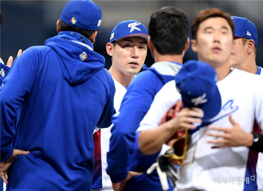 [아시아경제 김현민 기자]28일 서울 고척돔에서 열린 2017 월드베이스볼클래식(WBC) 대표팀과 호주와의 평가전에서 8-3으로 승리를 거둔 대표팀 선수들이 기쁨을 나누고 있다. 김현민 기자 kimhyun81@asiae.co.kr<ⓒ세계를 보는 창 경제를 보는 눈, 아시아경제(www.asiae.co.kr) 무단전재 배포금지>