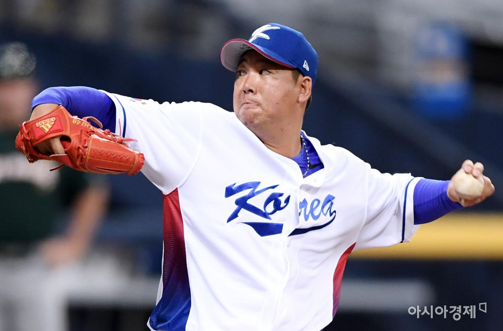 [아시아경제 김현민 기자]28일 서울 고척돔에서 열린 2017 월드베이스볼클래식(WBC) 대표팀과 호주와의 평가전, 9회초 구원투수 이현승이 역투하고 있다. 김현민 기자 kimhyun81@asiae.co.kr<ⓒ세계를 보는 창 경제를 보는 눈, 아시아경제(www.asiae.co.kr) 무단전재 배포금지>