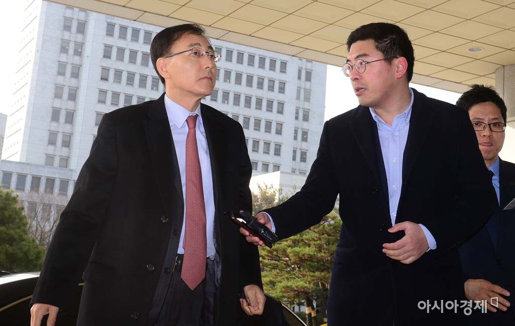 [아시아경제 백소아 기자] 2일 서울 서초구 대검찰청에서 출근을 하던 김수남 검찰총장(왼쪽)이 지난해 청와대 관련 수사 당시 우병우 전 대통령민정수석비서관의 전화를 받았냐는 취재진의 질문에 고개를 돌리고 있다.백소아 기자 sharp2046@asiae.co.kr<ⓒ세계를 보는 창 경제를 보는 눈, 아시아경제(www.asiae.co.kr) 무단전재 배포금지>