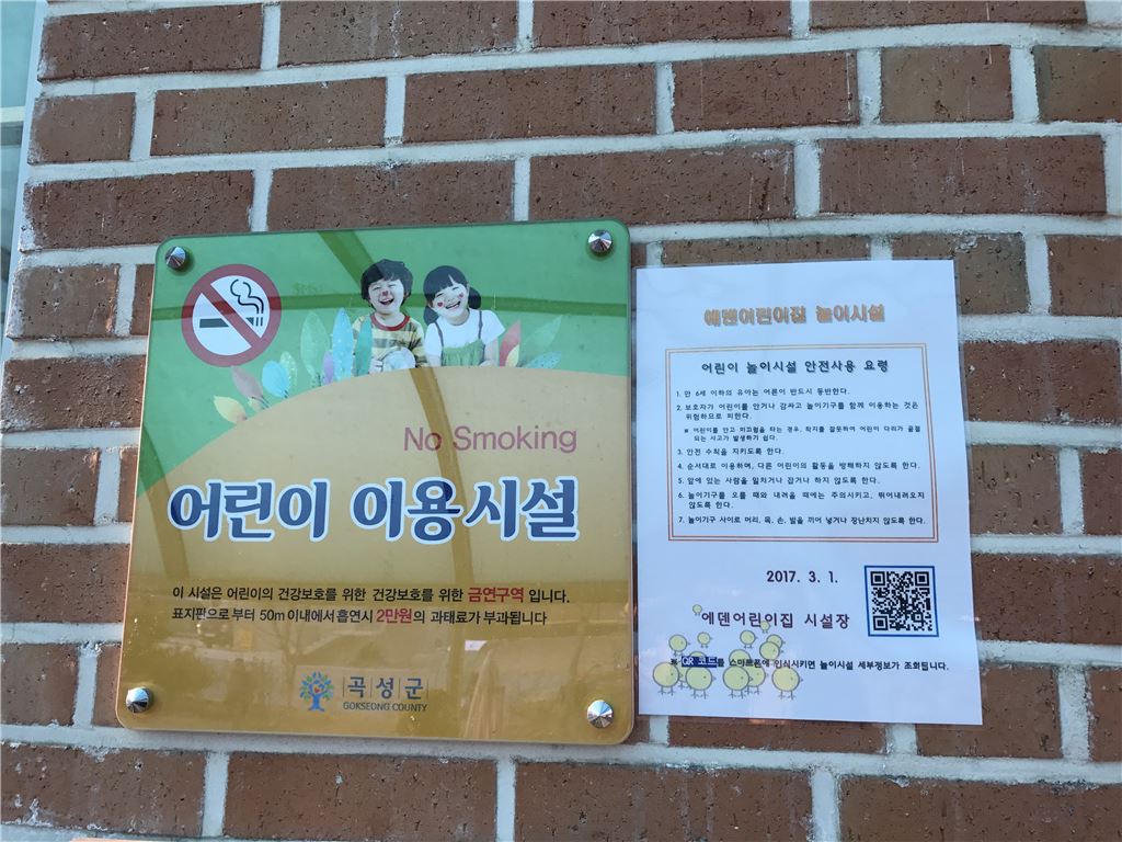[아시아경제 노해섭 기자]곡성군(군수 유근기)은 지난 2일 개학기를 맞아 관내 어린이 놀이시설 16개소에 안전점검을 실시하고 스마트폰과 연계한‘QR코드’를 설치했다고 밝혔다. 어린이는 각종 사고에 대처능력이 취약해 작은 위험요소에도 큰 사고를 당할 수 있어 부모가 자녀를 안심하고 보낼 수 있는 놀이시설에 대한 관심이 높다. 이에 따라 군에서는 어린이들의 안전사고 예방을 위하여 관내 어린이 놀이시설 16곳에 QR코드를 설치하여 스마트폰으로 어린이 놀이시설의 안전관리 실태를 확인할 수 있게 했다. 스마트폰으로 놀이시설에 설치된 QR코드를 검색하면 안전검사, 안전교육, 보험가입 등 해당 어린이 놀이시설과 관련된 모든 정보를 학부모, 일반주민 누구나 실시간으로 확인할 수 있다. 김석곤 안전건설과장은 “미래 곡성을 이끌어갈 어린이에 대한 안전은 최우선으로 추진되어야 할 사항이다”며 “어린이들이 안심하고 뛰어놀 수 있는 놀이공간을 마련할 수 있도록 최선을 다하겠다”고 말했다.노해섭 기자 nogary@<ⓒ세계를 보는 창 경제를 보는 눈, 아시아경제(www.asiae.co.kr) 무단전재 배포금지>
