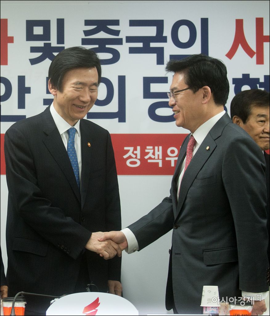 [아시아경제 윤동주 기자] 정우택 자유한국당 원내대표가 7일 국회에서 열린 북한 미사일 발사 및 중국의 사드 보복 관련 대응방안 논의 당정협의에 참석, 윤병세 외교부 장관과 인사를 나누고 있다.윤동주 기자 doso7@asiae.co.kr<ⓒ세계를 보는 창 경제를 보는 눈, 아시아경제(www.asiae.co.kr) 무단전재 배포금지>