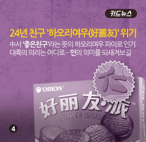 #사드 유탄맞은 오리온 웨이보 등 현지 소셜네트워크서비스(SNS)에서는 최근 '롯데 보이콧 참여' '롯데 사태' 등을 키워드(해시태그)로 내건 불매운동 리스트가 떠돌고 있다. 대부분의 네티즌들은 "나도 참여하겠다"며 끝없이 관련 글을 공유하며 확산시키는 분위기다. 그러나 리스트를 살펴보면 하오리여우(오리온), 하오여우취(스윙칩), 하오뚜어위(고래밥), 야투또우(오감자), 무탕춘(자일리톨), 모구리(초코송이) 등 오리온과 관련된 제품들이다. #중국 온라인서 '롯데 보이콧' 확산중국 현지에서 가장 인지도가 높은 국내 브랜드 오리온이 롯데의 계열사로 잘못 알려진 데 따른 것으로 보인다. 거론된 제품 역시 현지에서 오랜기간 큰 인기를 끌고 있는 주력 상품으로 꼽힌다. 중국 현지 매출이 전체의 60%에 달하는 오리온은 사태 진화에 나섰지만 쉽지 않은 분위기다.#모두 오리온 브랜드. 헉! 지난달 말 오리온은 현지 홈페이지를 통해 "오리온은 롯데의 계열사, 관계사가 아니다"라고 밝혔지만, 여전히 관련 글들은 SNS상에 급속도로 퍼지고 있다. 일부는 "이게 바로 애국", "애국 운동이 진행되고 있다", "롯데 보이콧이야말로 올바른 선택"이라고 덧붙이며 불매운동에 불을 지피는 양상이다. 현지의 한 마트 체인점에서 "국가와 국민의 이익을 위해 우리 마트에서는 롯데 제품을 팔지 않겠다"는 내용의 공지를 써붙여 매대에서 내린 과자 제품을 카트에 담아 놓은 사진도 떠돈다. 그러나 이 역시 롯데가 아닌 오리온의 제품이다. #24년간 맺어온 '하오리여우(好麗友)' 위기오리온 초코파이는 '좋은친구'라는 뜻의 '하오리여우'파이로 중국인들에게 더욱 친숙하게 다가가며 파이시장 점유율 1위를 기록하고 있다. 지난해에는 신제품 '초코파이 말차' 효과에 힘입어 오리온의 두 번째 '더블 메가브랜드'(연매출 2000억 원 이상 브랜드)에 등극하며 중국 법인의 성장을 이끌었다.오주연 기자 moon170@asiae.co.kr<ⓒ세계를 보는 창 경제를 보는 눈, 아시아경제(www.asiae.co.kr) 무단전재 배포금지>