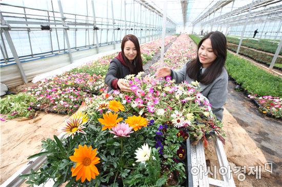" 봄꽃들도 출하준비‘완료’ " [아시아경제 노해섭 기자]봄을 시샘하는 꽃샘추위 속에서도 하우스 안의 꽃들은 화사한 봄맞이를 준비하고 있다. 해남군농업기술센터 육묘장에서 출하를 앞두고 각 읍면으로 분양될 꽃들을 점검하고 있다. 분양될 꽃들은 봄맞이 거리 단장에 쓰일 예정으로 3월말까지 비올라, 리빙스턴데이지, 가자니아 등 4만 7,000여본이 공급될 예정이다. 해남군은 봄꽃을 시작으로 여름꽃 7만본, 가을꽃 2만 7,000본, 겨울꽃 4만본을 공급해 사계절 아름답고, 쾌적한 거리환경을 조성해 나갈 계획이다. 노해섭 기자 nogary@<ⓒ세계를 보는 창 경제를 보는 눈, 아시아경제(www.asiae.co.kr) 무단전재 배포금지>
