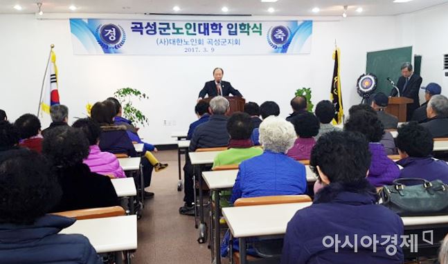 "노년의 활력은 노인대학에서"[아시아경제 노해섭 기자]곡성군(군수 유근기)는 9일 사회복지회관에서 대한노인회 곡성군지회 ‘제16기 노인대학 개강식’을 가졌다. 개강식에는 150명의 입학생이 참석해 16기 노인대학의 문을 열었으며, 지금까지 800여 명의 노인대학 졸업생을 배출했다. 노인대학은 이번 개강식을 시작으로 12월 졸업식까지 매주 1회 노인의 역할, 교양강좌, 건강관리, 노래교실 등 외래강사 강의로 프로그램이 진행된다. 군 관계자는 “어르신들이 배움의 터에서 행복하고 건강한 노후생활을 함께 할 수 있도록 최선의 노력을 다하겠다”고 밝혔다.노해섭 기자 nogary@<ⓒ세계를 보는 창 경제를 보는 눈, 아시아경제(www.asiae.co.kr) 무단전재 배포금지>