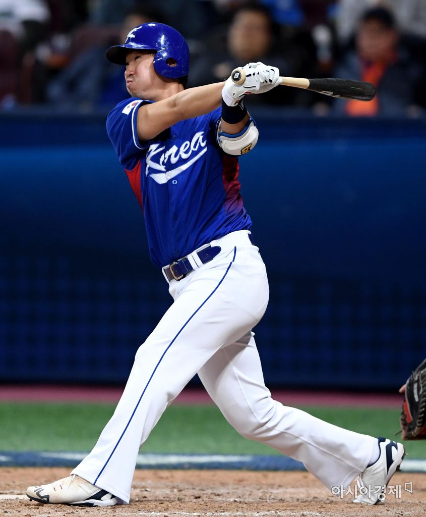 [아시아경제 김현민 기자]9일 서울 고척돔에서 열린 2017 월드베이스볼클래식(WBC) 1라운드 A조 조별예선 한국과 대만의 경기, 9회초 1사 1루에서 김재호가 좌전 안타를 치고 있다.김현민 기자 kimhyun81@asiae.co.kr<ⓒ세계를 보는 창 경제를 보는 눈, 아시아경제(www.asiae.co.kr) 무단전재 배포금지>