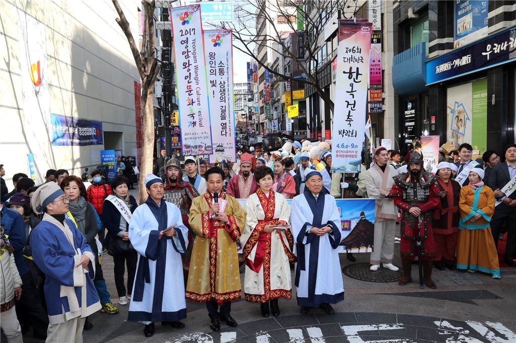 [아시아경제 노해섭 기자]전라남도 영암군은 영암왕인문화축제와 대한민국한옥건축박람회를 홍보하는 퍼레이드가 지난 10일 서울 명동에서 열려 서울 시민들의 많은 관심을 받았다. 특히, 올해로 20주년을 맞이하는 영암왕인문화축제는 3년 연속 문화관광 유망축제에 선정되는 등 축제 분위기가 고조되고 있다. 노해섭 기자 nogary@<ⓒ세계를 보는 창 경제를 보는 눈, 아시아경제(www.asiae.co.kr) 무단전재 배포금지>