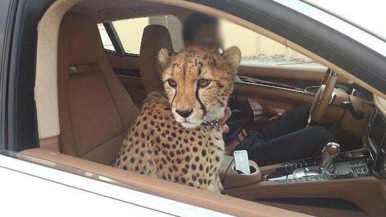 아랍에미리트를 비롯한 중동권 국가에선 조수석에 자리잡은 사자, 표범, 치타 등의 맹수를 심심찮게 볼 수 있었으나 잇따른 인명피해로 이 같은 광경은 다시 보기 어려울 전망이다. 사진 = Al Arabiya 트위터