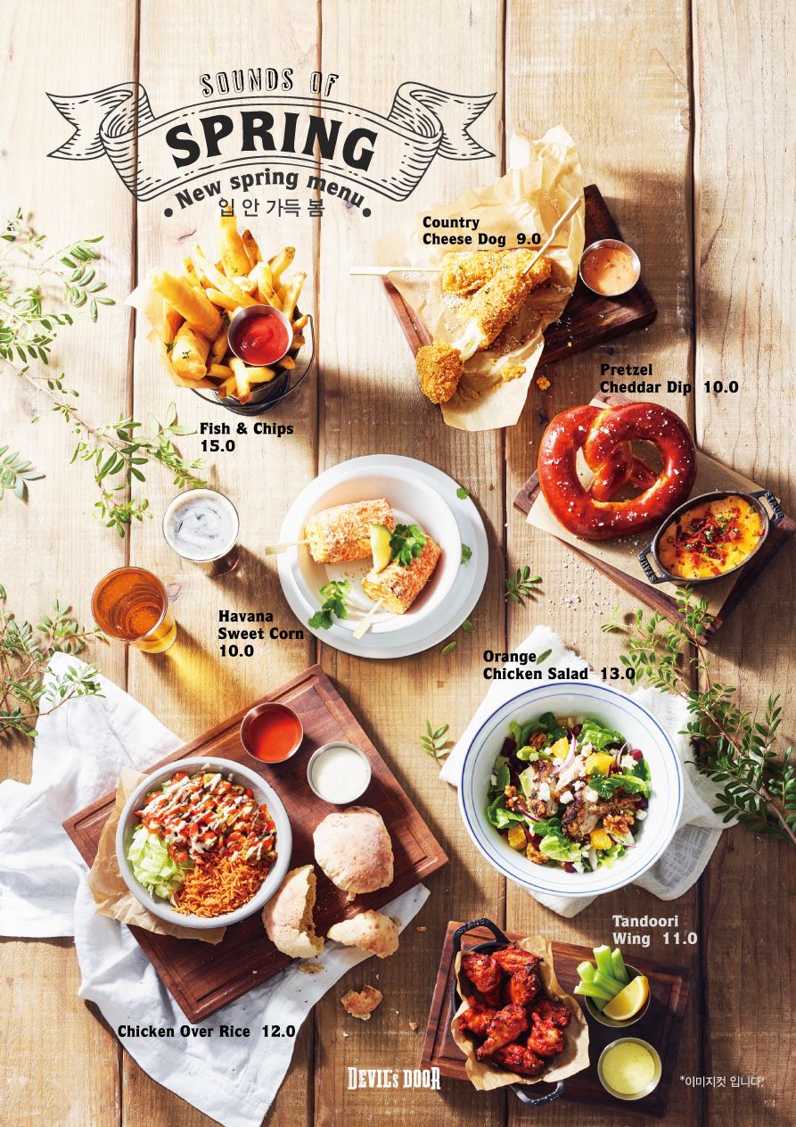 [아시아경제 오주연 기자]신세계푸드가 운영하는 아메리칸 스타일 게스트로펍 데블스도어가 봄 신메뉴 7종을 출시한다고 15일 밝혔다.사운즈 오브 스프링 콘셉트로 선보인 데블스도어 신메뉴 7종은 가볍고 산뜻한 맛에 부담 없는 가격으로 구성된 것이 특징이다. 주요 메뉴로는 아삭한 로메인에 오렌지, 펜넬, 비트, 닭가슴살을 넣고 레드와인 비네거로 맛을 낸 상큼한 ‘오렌지 치킨 샐러드’(1만3000원)와 인도 쌀 바스마티로 지은 밥에 치킨과 부드러운 화이트 소스와 달콤한 레드 소스를 곁들인 ‘치킨 오버 라이스’(1만2000원), 소프트한 프레즐과 함께 데블스도어 스타우트와 체다 치즈를 넣어 만든 ‘프레첼 체다 딥’(1만원) 등 3종이다. 또한 존슨빌 소시지에 체다 치즈로 감싸 튀겨 바삭한 ‘컨츄리 치즈 도그’(9000원), 허니 사워 마요네즈를 바르고 그라나파다노 치즈와 새콤한 타진 파우더로 맛을 내 구운 ‘하바나 스위트 콘’(1만원), 마리네이드한 생선살을 수제맥주로 숙성시킨 반죽에 감싸 튀겨 바삭하고 촉촉한 ‘피쉬 앤 칩스’(1만5000원), 탄두리 소스로 마리네이드하여 매콤하게 즐길 수 있는 데 ‘탄두리 윙’(1만1000원) 등 봄 메뉴 4종도 새롭게 추가됐다.데블스도어에서는 봄 신메뉴 출시와 함께 3월 한달 간 신입생들의 입학을 응원하는 프로모션도 실시한다. 매장 방문 시 신입생 인증 서류(입학증, 학생증)를 제시하면 테이블 당 메뉴 1종을 무료로 제공한다. 제공 메뉴는 ‘크리스피 치킨 버거’ 또는 ‘토마토 모짜렐라 파스타’ 중 하나다.오주연 기자 moon170@asiae.co.kr<ⓒ세계를 보는 창 경제를 보는 눈, 아시아경제(www.asiae.co.kr) 무단전재 배포금지>